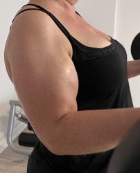 Again my wife, missing for a while due to problem to her left wrist, and with some added weight... but I hope still muscular!