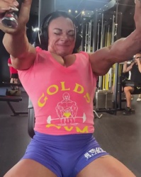 Mirea has a lot of great clips with her pumped pecs coming up to her chin